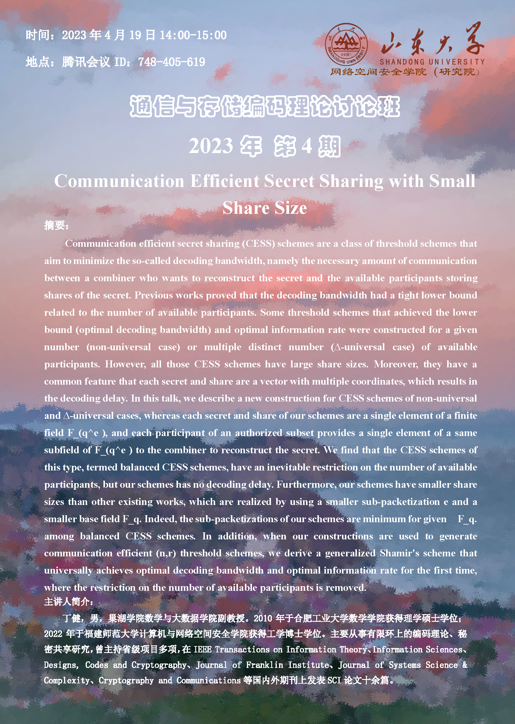 上一条:【通信与存储编码理论讨论班】2023年 第5期 《On Multiple-Deletion Multiple-substitution Correcting Codes》