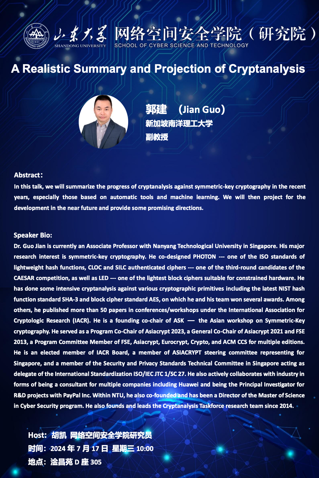 下一条:【网络空间安全名家讲坛】图灵奖获得者Adi Shamir教授学术报告