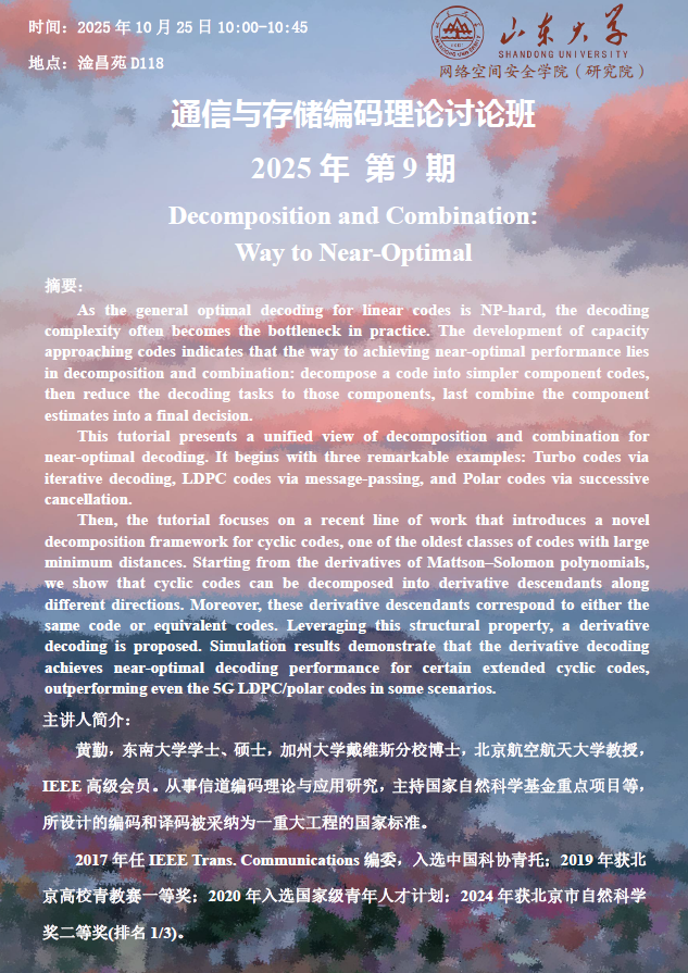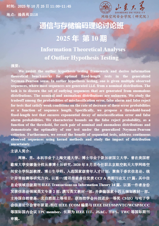 上一条:【通信与存储编码理论讨论班】《Algebra Remains a Cradle for Improving Codes》《拓扑网络中的信息论安全聚合理论研究》