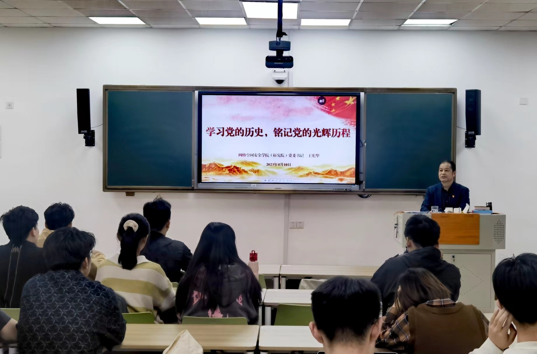 根据学院党委工作安排,4月10日,网络空间安全学院(研究院)党委书记王宪华为学院入党积极分子讲授专题党课,学院2023年上半年全体入党积极分子参加活动。