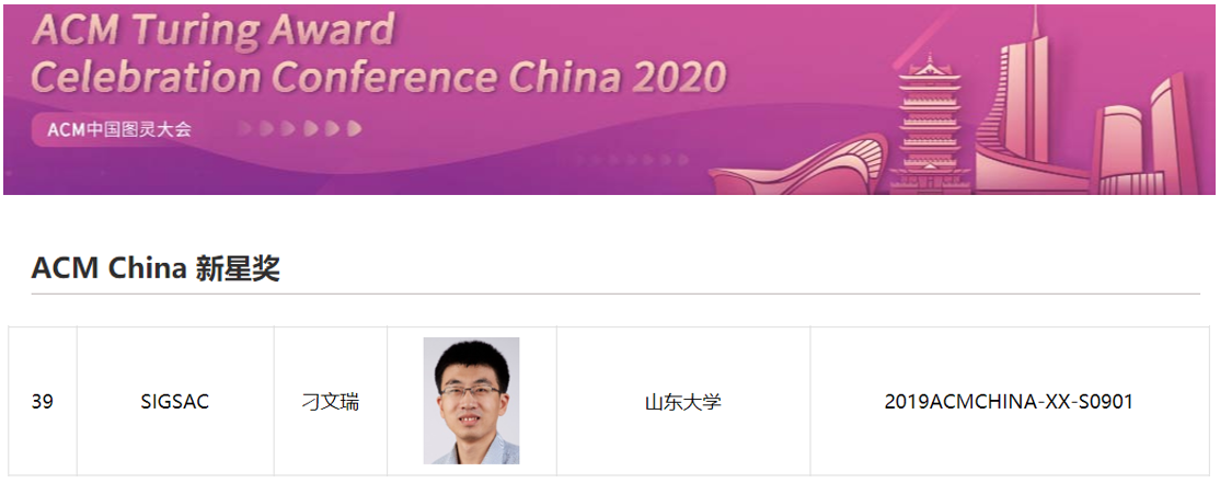 ACM China新星奖是ACM中国理事会于2014年设立,用于表彰中国计算机领域的青年学者所取得的研究成绩,并进一步推动青年学者在科研领域的发展和进步。其中ACM SIGSAC China每年评选出1-2名在计算机安全领域展现出突出科研潜力的青年学者获得该奖。