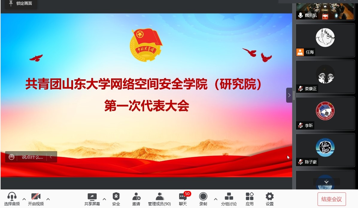 网络空间安全学院(研究院)第一次团代会在嘹亮庄严的团歌中闭幕。学院114名团员代表通过线上、线下相结合的方式参加了会议。