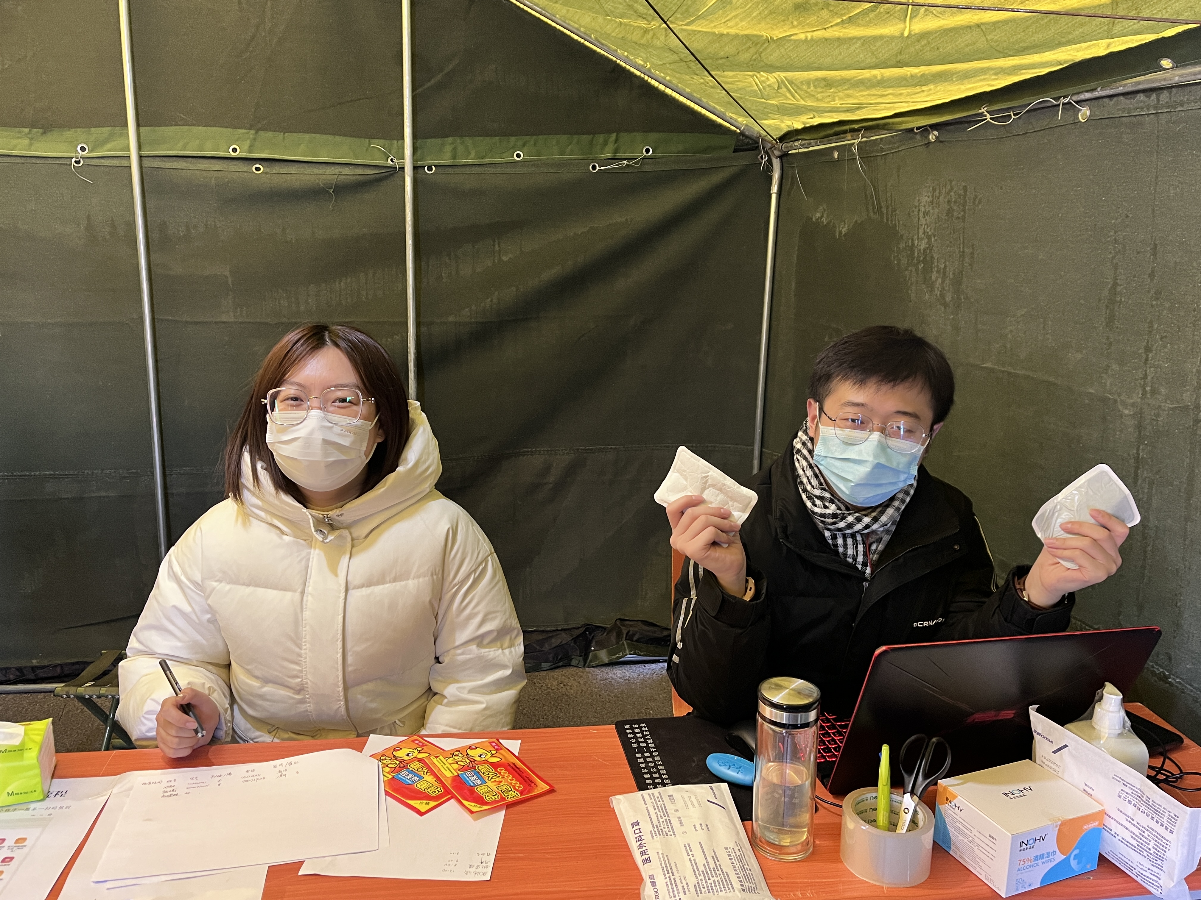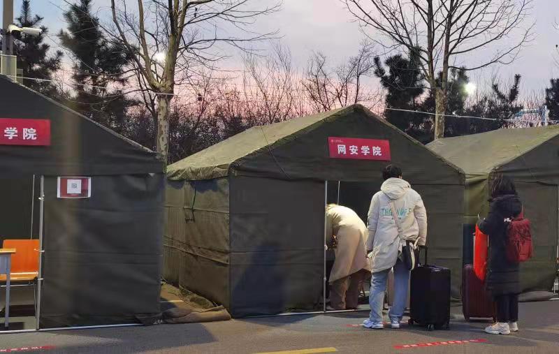 返校期间,学院在校区内统一设立报到点。学生返校当天,气温骤降,寒风凛冽。学院副书记带领辅导员和学生志愿者在现场认真查验返校学生健康码、行程码及48小时核酸检测阴性证明等材料,引导学生扫码报到、进行核酸检测,热情迎接学生返校,给学生送去面对面温馨问候和祝福。校区相关领导、有关职能部门负责人、学院主要领导多次到现场检查指导工作,看望返校学生,了解返校工作进展,帮助解决困难,为现场值班人员送上大衣、“暖宝宝”等御寒用品。