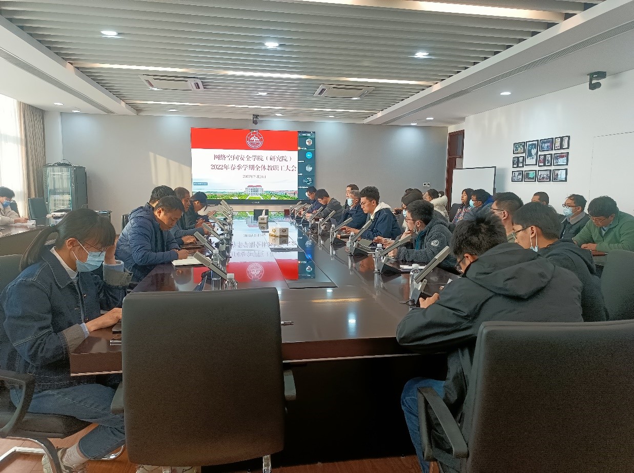 2月24日,网络空间安全学院召开新学期工作部署会,贯彻落实学校新学期工作会议精神,部署学院2022年重点工作。学院党委书记王宪华主持会议,常务副院长王美琴、副院长郭山清、魏普文、胡思煌、副书记顾乃静出席会议。
