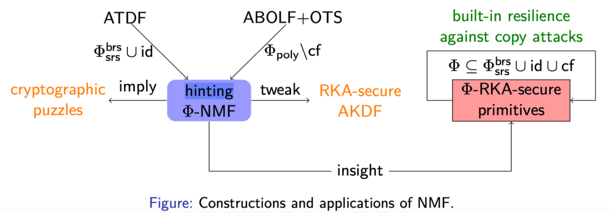 上世纪90年代,哥德尔奖得主Cynthia Dwork和Moni Naor引入的不可延展性是密码学中单向性和伪随机性之外的另一重要性质,该性质精准刻画了密码组件输入/输出之间的独立性。已有的研究工作考察了加密、承诺、零知识证明、编码、程序混淆的不可延展性,然而一直未涉及密码学乃至计算机科学中最基本的函数。函数的不可延展性与单向性之间存在怎样的关联以及如何构造高效的不可延展函数均是未解的公开问题。该论文成功解决了上述问题,在理论层面,首次绘制出函数不可延展性与单向性之间的清晰图景,通过巧妙结合方程求解技巧和变换集代数性质,建立起不可延展函数与单向函数之间的关联,并分别在标准模型和随机谕言机模型中给出了通用构造,解决了美国Georgia Tech大学Alexandra Boldyreva教授和德国 Bochum 大学 Eike Kiltz 教授等著名密码学家提出的公开问题。在应用层面,不仅直接蕴含了密码谜题的高效设计,还深度揭示了不可延展函数在抗篡改安全中的强力应用:一是证明了对于代数诱导的变换集,抗非平凡拷贝攻击属于密码方案的内蕴性质,从而直接提升了一大批密码方案的抗相关密钥攻击安全性;二是构造出了迄今为止效率和安全均最优的认证密钥导出函数,提供了将传统安全提升为抗篡改安全的关键技术工具。