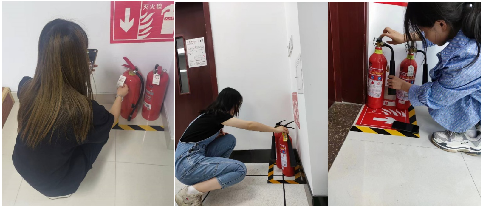 学院主要的安全隐患为用电安全,常规消防设备为灭火器,本次检查重点针对灭火器是否处于有效期、是否需要维修和报废进行检查。实验室目前备有ABC干粉灭火器、二氧化碳灭火器两种设备,具体的养护手段和使用手段不同,借此机会,实验室安全负责人也对检查小组进行了相关培训。