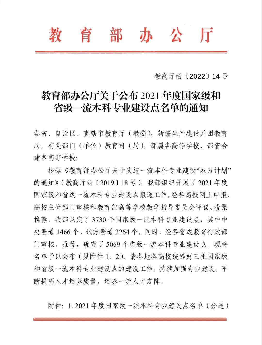 近日,教育部办公厅发布《关于2021年度国家级和省级一流本科专业建设点名单的通知》(教高厅函〔2022〕14号),学院密码科学与技术专业入选国家级一流本科专业建设点。