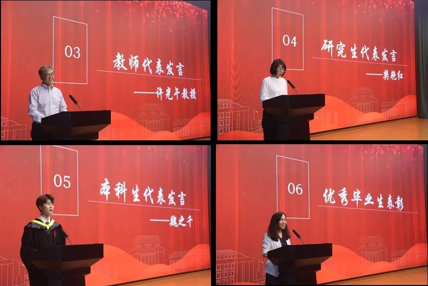 研究生代表樊艳红、本科生代表魏之千代表学院全体毕业生发言。他们结合自身学习科研经历,回顾了难忘的网安学院学习生活历程,诚恳表达了对学院和广大教师栽培的感恩,同时展望未来,充满对未来的热烈期盼。