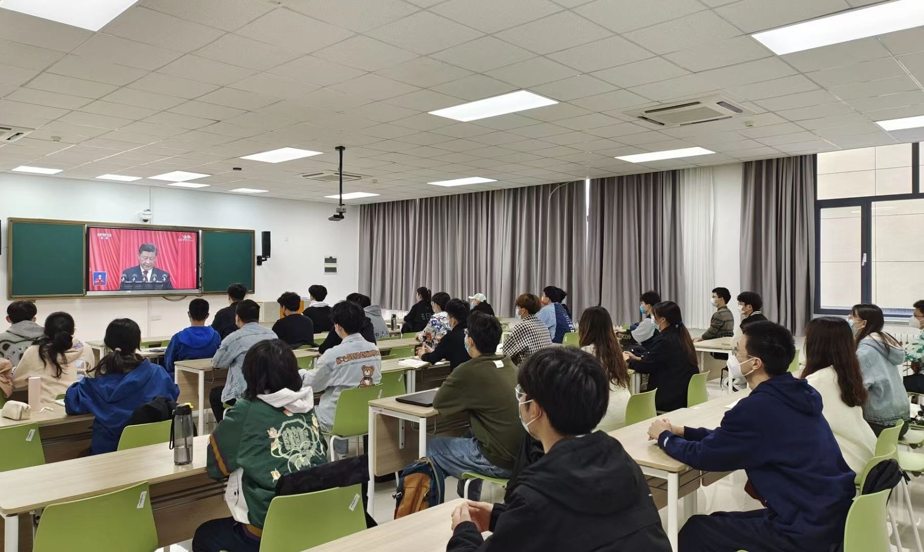 学院在青岛校区设三个线下会场,师生代表集体观看了开幕会直播。与会人员认真学习了习近平总书记所作的报告,把握党的十九大以来建设成就和国家未来发展蓝图,并就报告内容进行了探讨和交流,深刻领会报告内涵与意义。
