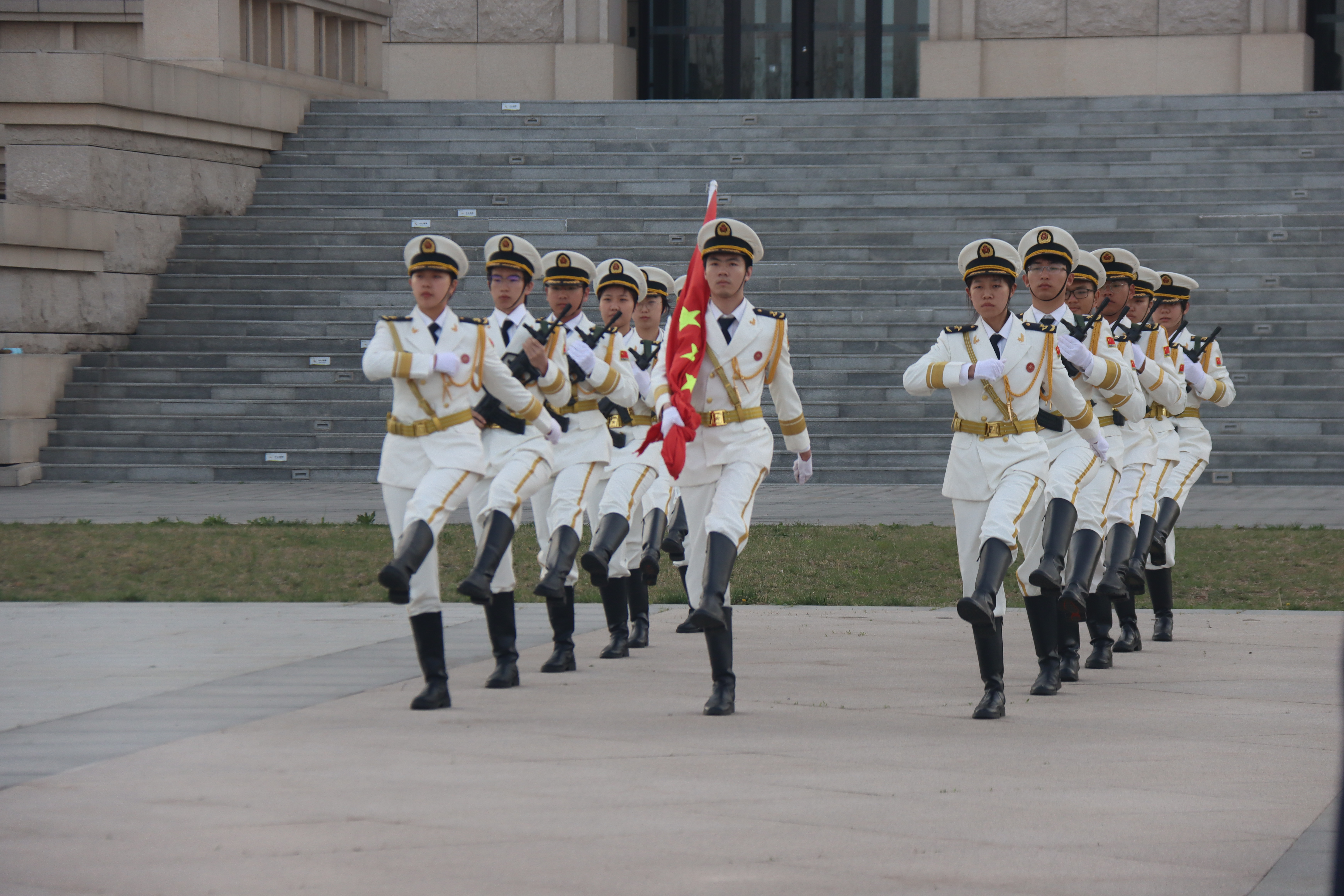 早晨7点,全体人员准备就位,升旗仪式正式开始。晨光洒下,一声“正步走”响彻云霄,正步铿锵堂堂气,寒光闪耀凛凛威。国旗护卫队护送五星红旗走向升旗台。伴随着庄严的国歌,五星红旗冉冉升起,全体人员肃立,行注目礼。