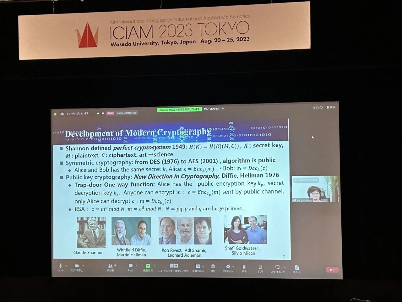 8月24日上午,中国工业与应用数学学会(CSIAM)顾问委员、网络空间安全学院院长王小云院士应邀在线作了题为“Lattice-based Cryptography: From Theory to Practice”的报告。每届大会都会邀请一些国际著名的应用数学家作邀请报告,这些学者都是学界公认的领袖级人物。王小云院士是本届大会仅有的两位作邀请报告的华人学者之一,她在大会上分享了自己在格密码领域取得的科研成果与进展,展现了中国女性应用数学家的魅力。