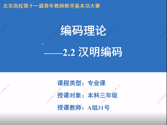 会上,黄勤以知识点“编码理论-2.2汉明编码”为例,通过切片讲解技巧的方式,深入浅出地向大家分享了自身对如何提升课堂教学能力的思考与体会。黄勤围绕“如何通过传递正面的科学观、人生观、价值观实现课程思政建设”“如何选择具有话题性、相通性、重要性的教案”“如何科教融合,生动有趣地引入问题”以及“如何展示既体现精髓又富有完整逻辑的板书”等四个方面对专业课程的课堂教学进行了讲解、分析与探讨。最后,黄勤强调,教学切忌照本宣科,应体现自身在教学知识点以及教育方式方法上的思考与创造。