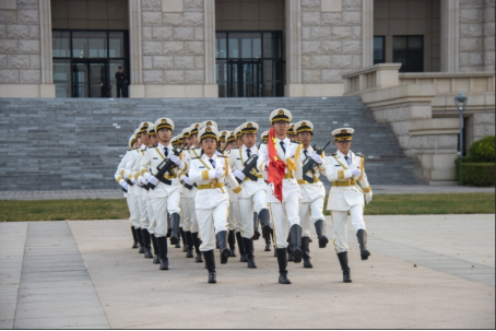 本次升旗仪式在雄壮激昂的合唱中顺利结束。