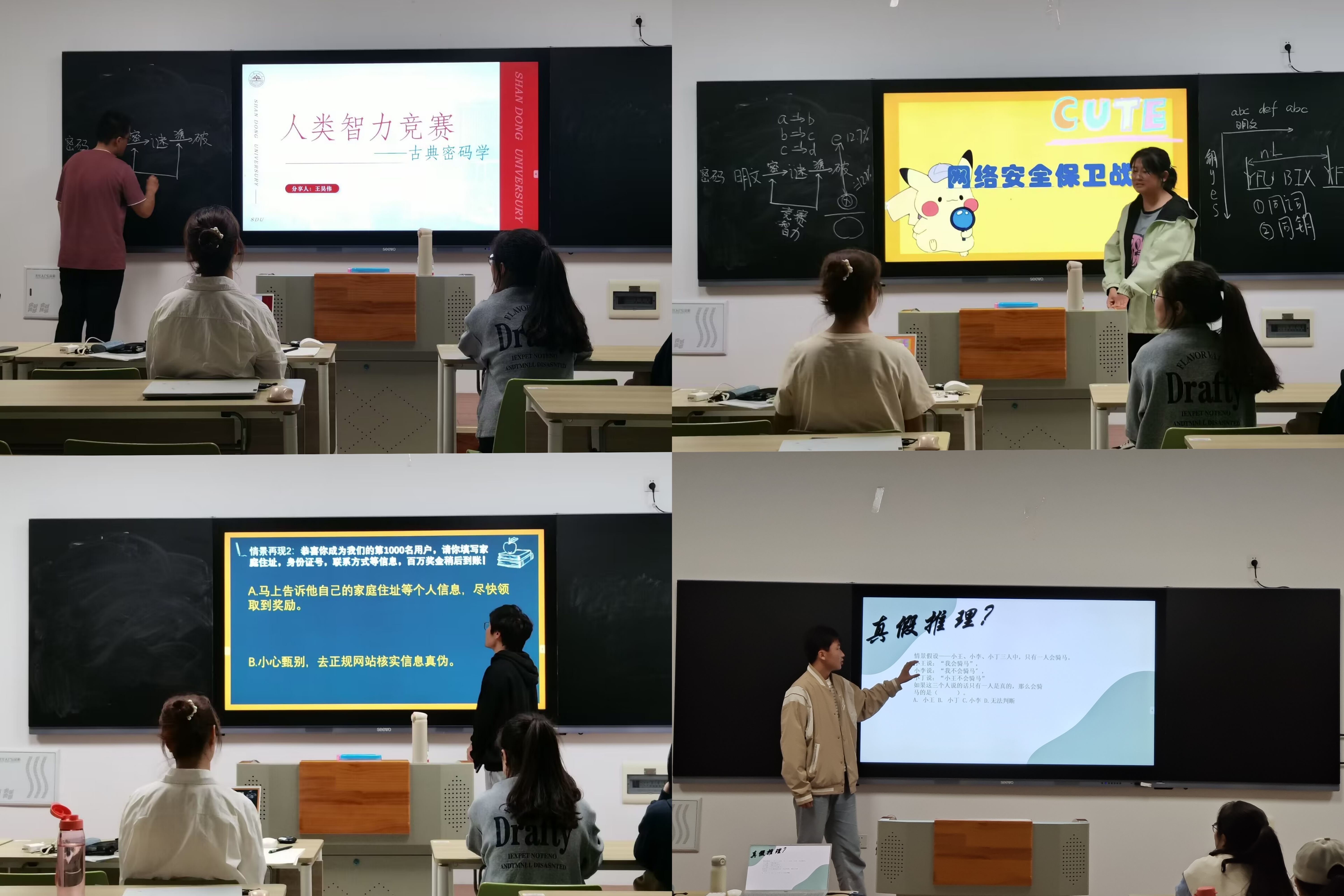 《平凡世界的仓鼠先生》将网络安全领域中的安全漏洞和攻防知识与电影《我是谁:没有绝对安全的系统》(Who am I)相结合,以电影中的“黑客”攻击与防护为兴趣索引,介绍了基础的加密、解密过程和代表性古典密码,并引入了硬件和软件概念及身边事例,打开了同学们对网络安全的认知窗口。《中西数学之美——汉诺塔》则注重动手实践,通过充满逻辑魅力的汉诺塔,带领同学们认识了“递归”的概念,帮助其完成了逻辑概念在计算机领域中的简单实现。