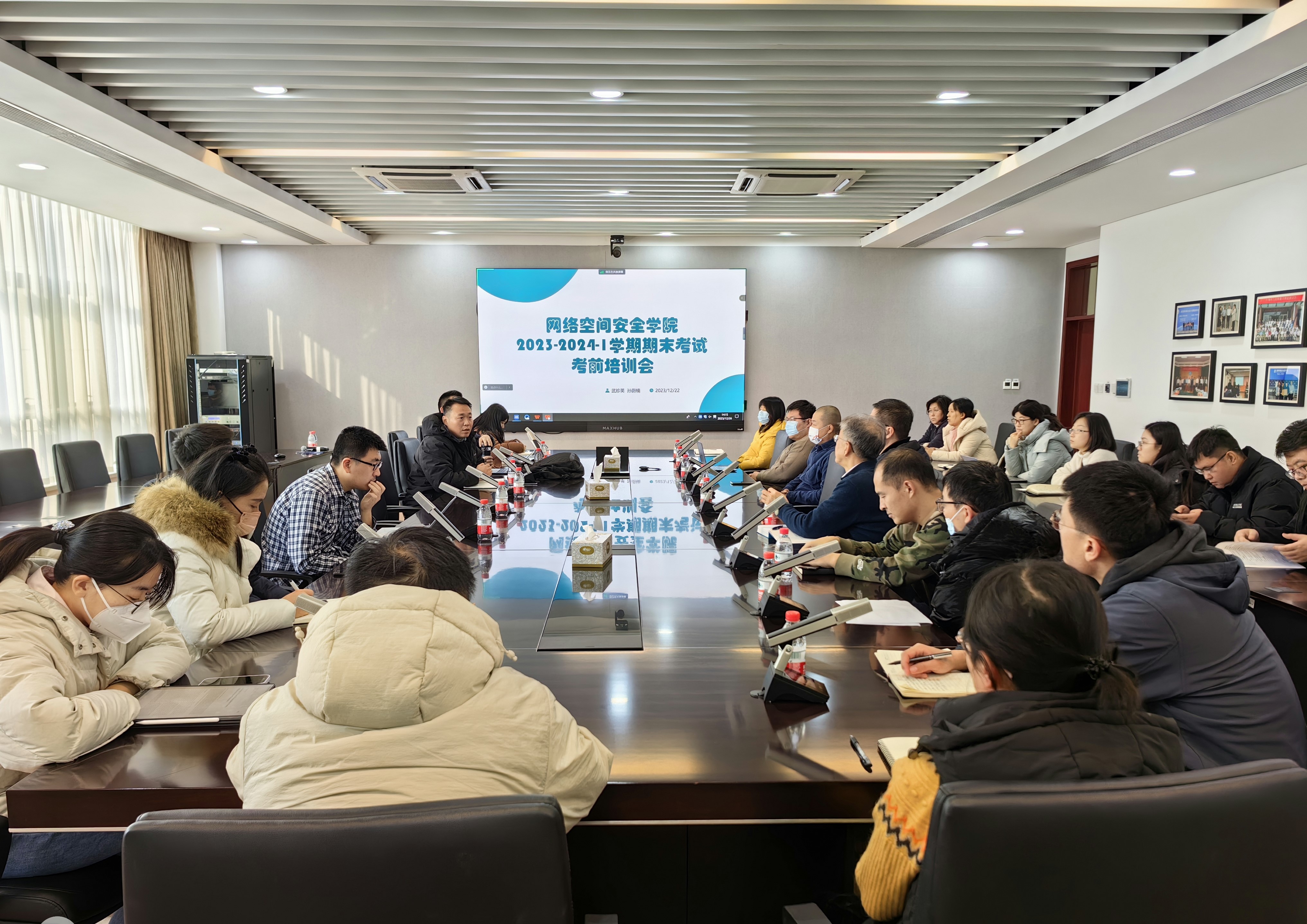 为贯彻落实学校发布的《关于做好2023-2024-1学期期末考试工作的通知》精神,进一步规范考试管理,保障本次期末考试顺利进行,12月26日,网络空间安全学院召开2023-2024-1学期期末考试考前培训会。学院副院长胡思煌主持会议,党委副书记顾乃静、全体教职人员通过线上、线下方式参加了培训。