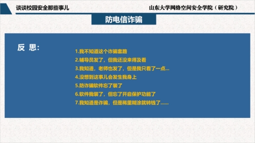 实践育人,积极引导学生开展社会实践。学院根据校团委寒假社会实践工作方案,制定学院实施细则,引导学生深入基层,学以致用,到祖国最需要的地方感悟实践伟力与时代脉搏,提升实践、服务能力;学院“启明”寒假支教社会实践专项支教团、“法网星火”爱国主义教育实践团、齐鲁母校回访团等社会实践团队积极开展网络空间安全知识普及、政策宣讲、优秀学子母校回访等工作,面向山东省临沂市临沭县临沭街道沭河社区、宁夏回族自治区银川市西夏区怀远路街道金阳社区、山东省青岛二中、山东省即墨一中等社区及学校青年学生完成多次授课活动和宣讲工作,涉及人数约400余人次。