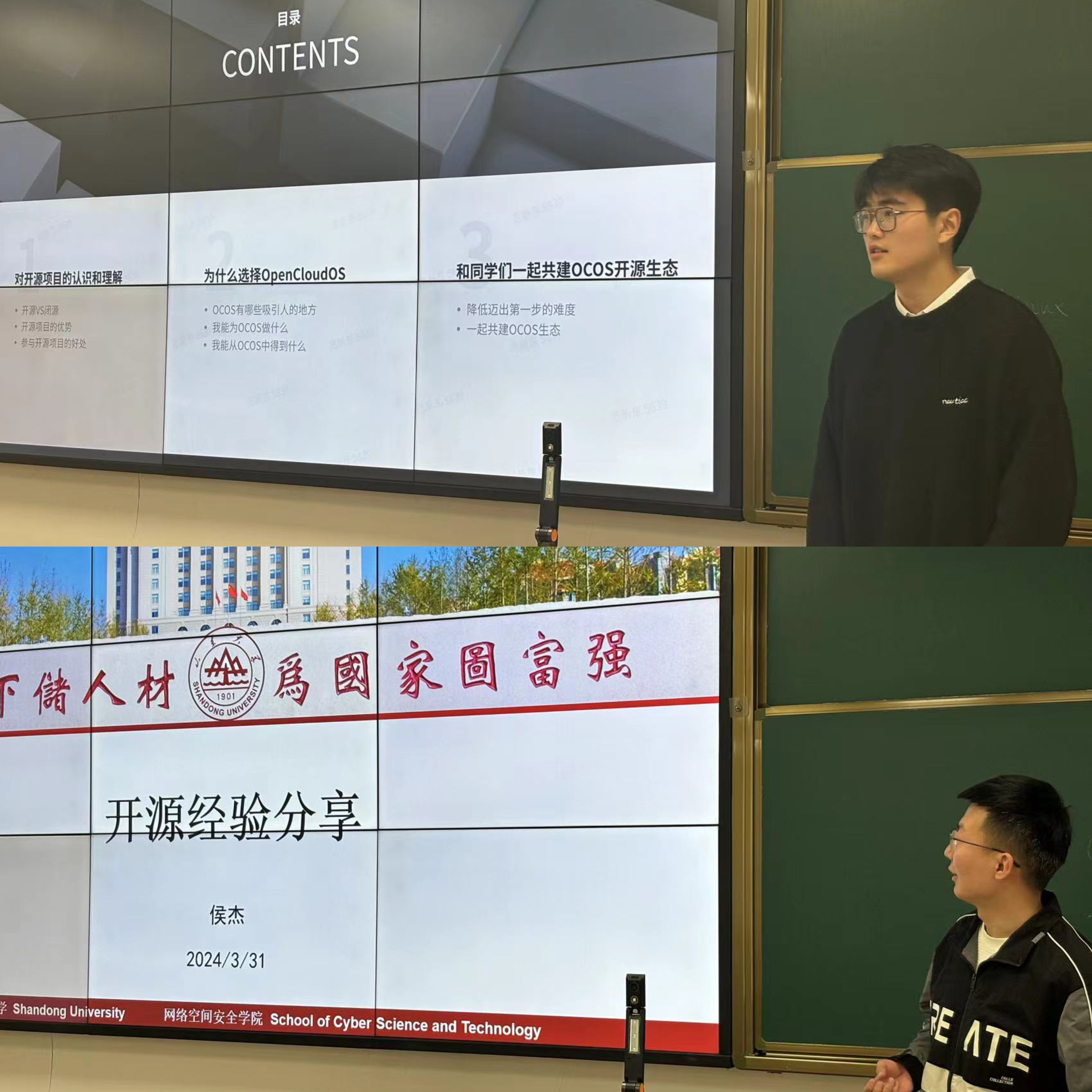 学院副研究员张伟介绍了学院发展成就、学科建设情况以及学院学生在开源社区的出色表现,希望双方在开源生态建设、应用创新、课程实验创新等方面进一步开展合作。学院研究生范新东、侯杰从自身开源实践经验出发,向现场同学们分享了对开源社区的认识,并展示了开源实践项目的具体实现流程。