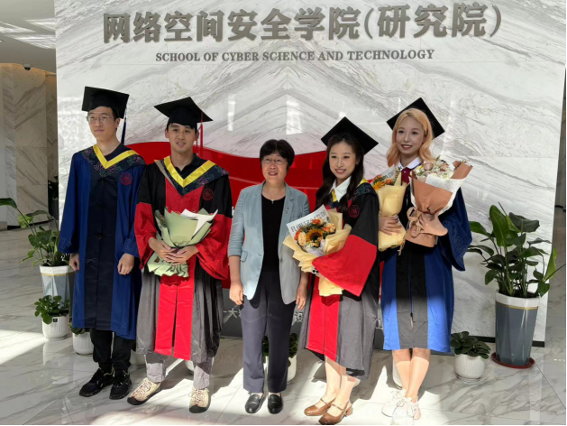 在学位授予仪式上,学院学科带头人王小云、王美琴、许光午、胡思煌、刁文瑞与毕业生合影留念。