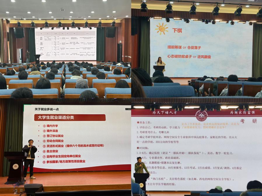 精准施策,关注重点群体思想动态。学院高度重视毕业生的思想动态和学习生活情况,积极开展考研动员、政策解读、经验分享等活动,为考研学生提供全方位的指导和服务。召开考研复试经验分享会,邀请优秀研究生代表分享备考经验,并解答学生疑问。辅导员通过谈心谈话、走访宿舍等方式,及时了解考研学生的思想动态和心理状态,帮助他们缓解压力,树立信心,以积极乐观的心态迎接挑战。