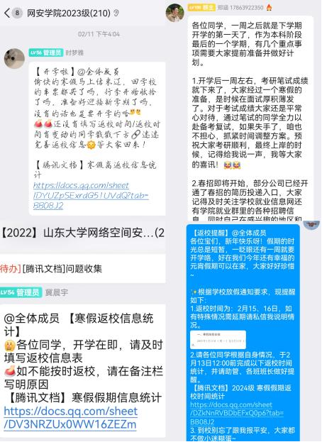 暖心护航,筑牢安全返校“防护墙”。学院高度重视学生返校工作,细化工作流程,确保学生安全、有序返校。辅导员通过线上班会、群通知等方式,提前告知学生返校时间、流程及注意事项,提醒学生关注天气及交通情况,妥善保管个人物品。同时做好学生假期突发情况摸排,帮助学生办理请假延迟报到手续,建立返校台账,动态掌握学生返校情况。