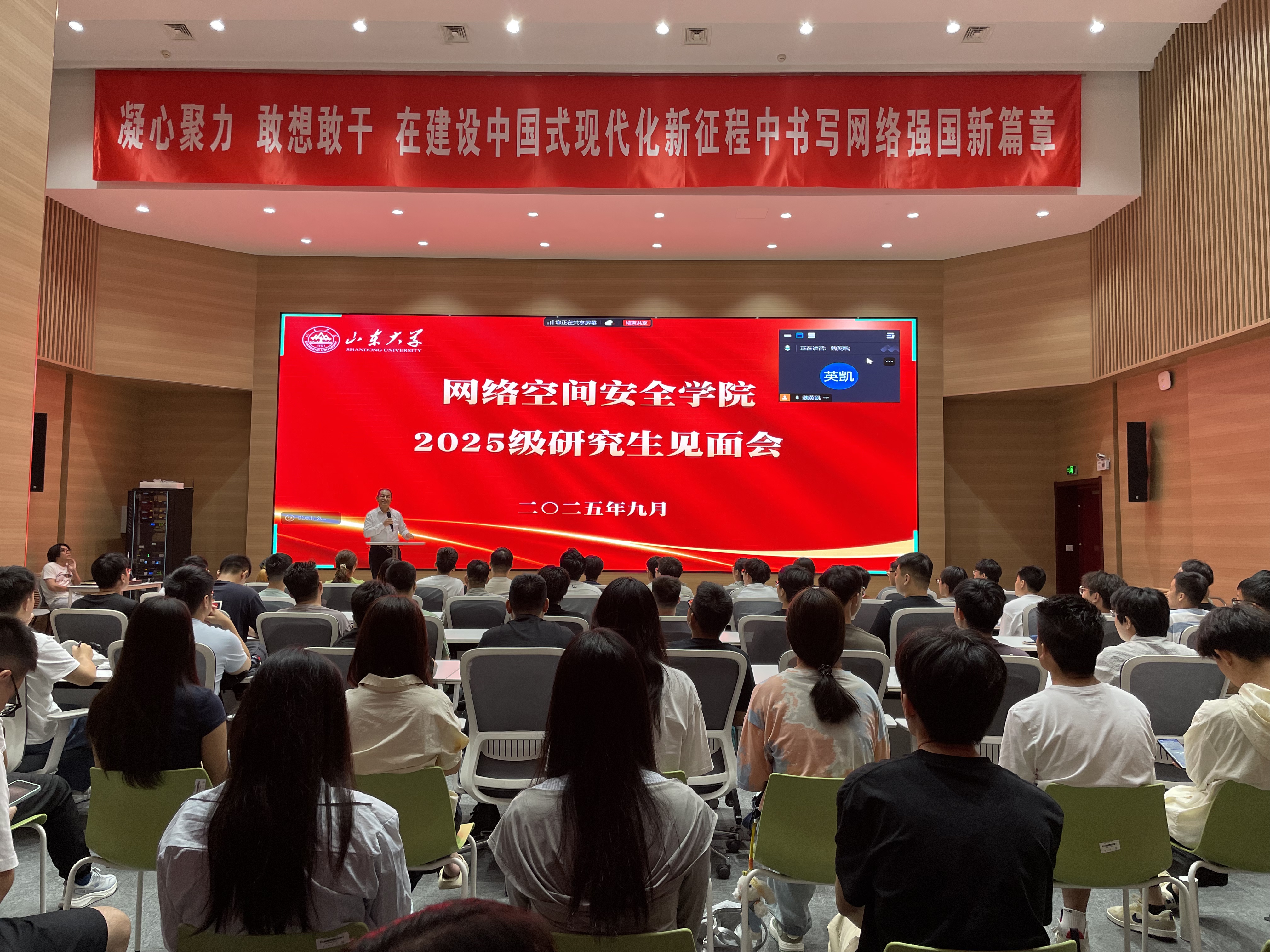 9月3日,网络空间安全学院2025级研究生新生见面会在学院报告厅举行。学院党委书记王宪华出席会议并讲话,2025级全体研究生新生、研究生辅导员、研究生秘书参加了此次见面会。会议由学院院长助理、团委书记魏英凯主持。