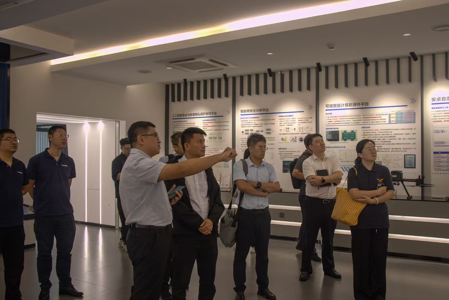 随后,全体人员共同参观了学院科研成果展厅,详细了解了学院在网络安全核心技术攻关、成果转化与应用等方面取得的最新进展,并围绕技术落地与校企合作等展开探讨。