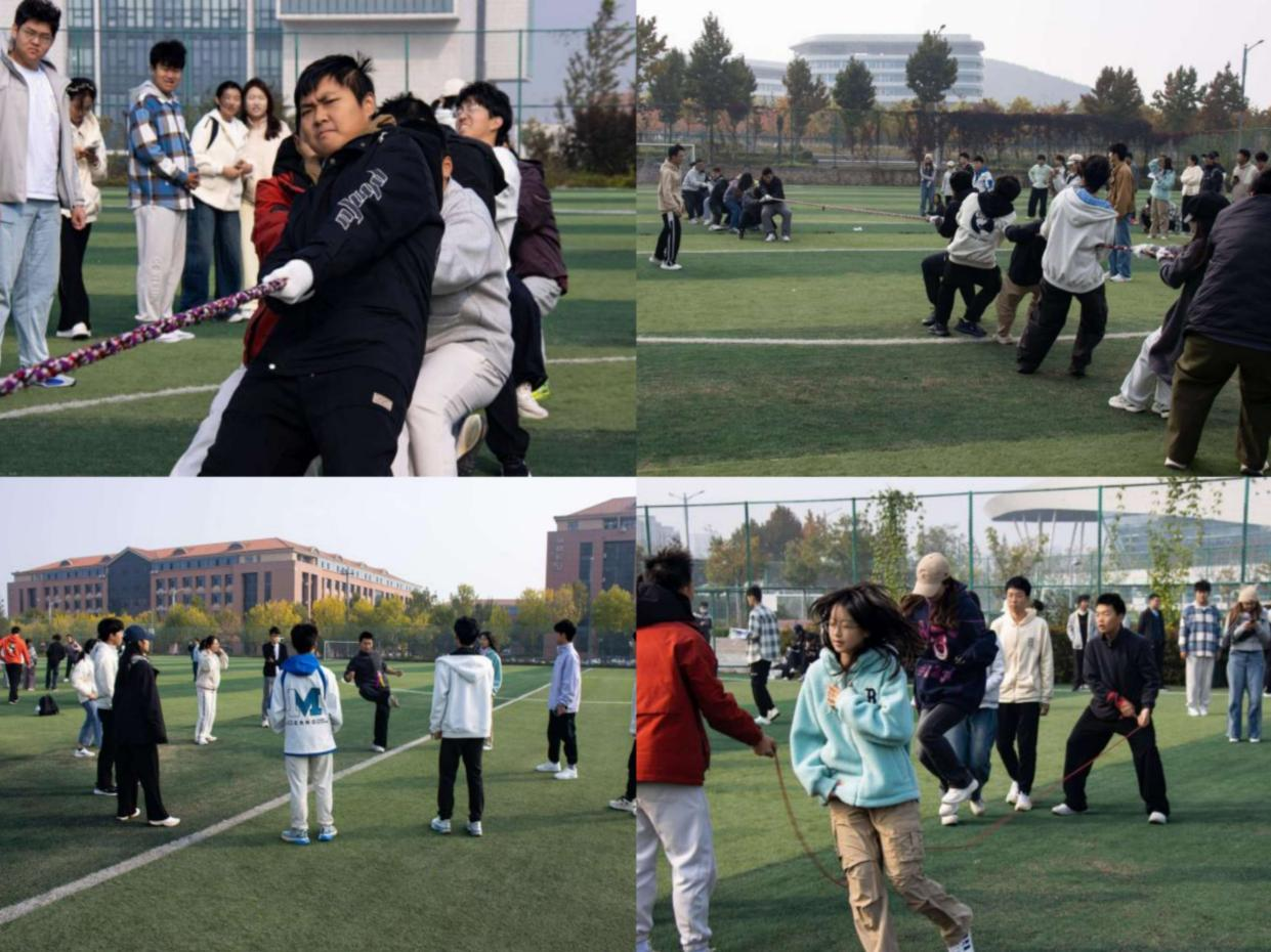 本次秋日运动会共设置拔河、八字跳绳等三个集体项目和踢毽子等多个个人项目。参赛选手们展现出高超的体育素养和默契的团队配合能力。最终,2024级本科网安一班突出重围,在团体积分中斩获第一名的好成绩。本次活动反响热烈,参赛选手情绪高涨、顽强拼搏,裁判和志愿者们认真负责、公平公正、热情服务,展现了网安学子互助友爱、团结协作的良好风貌。