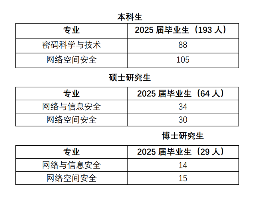 学院2025届应届毕业生共286人,其中本科毕业生193人,硕士毕业生64人,博士毕业生29人,具体见表2。