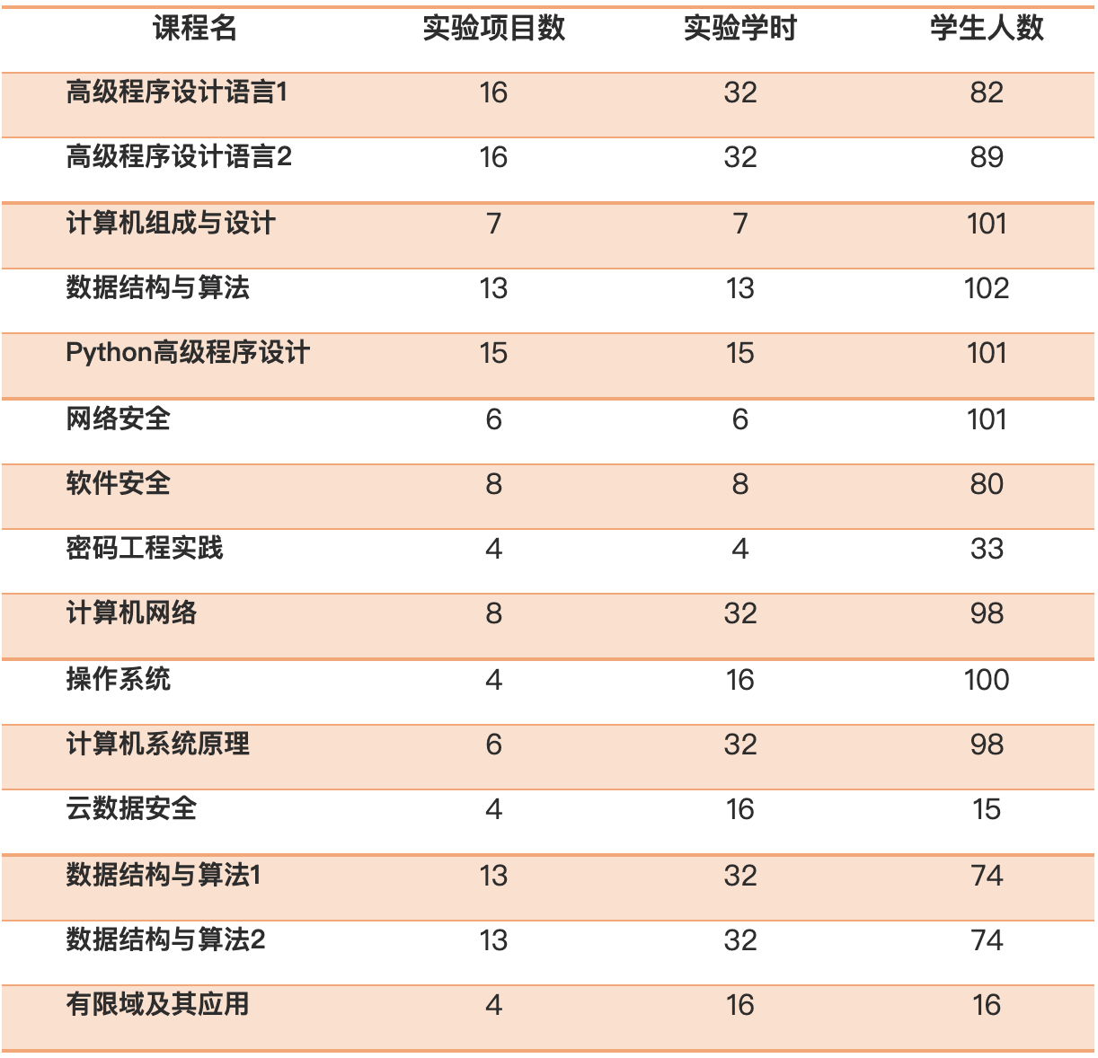 面向网络空间安全和信息安全专业,中心2020学年共开展实验课程15门,实验共计293学时,实验项目137项,实验人时数23502/年。