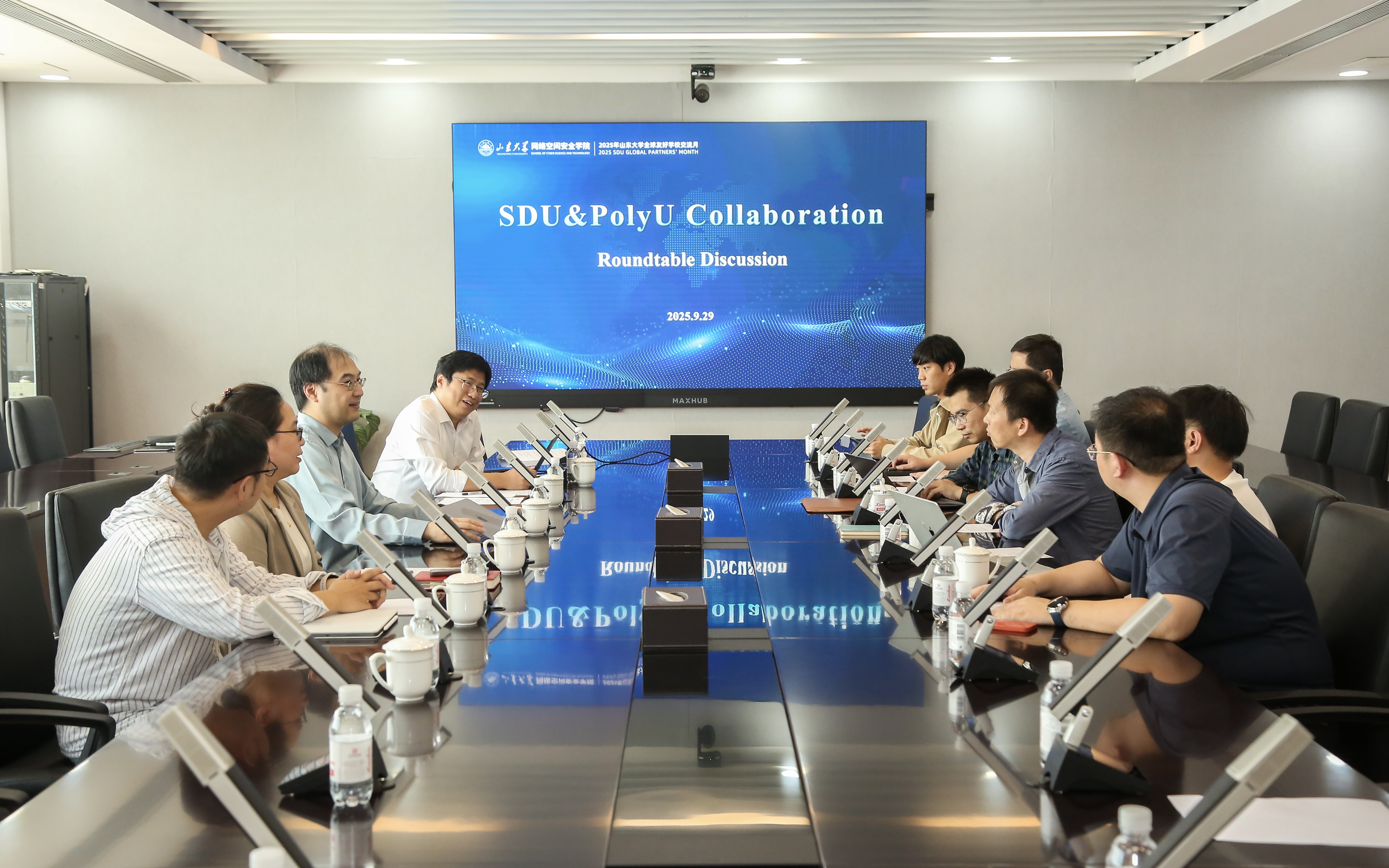 During his visit, Prof. Au also attended the SDU&PolyU collaboration round-table discussion. Both sides presented their respective programs, faculty, research projects and university-industry collaboration in cryptography. Discussions focused on cutting-edge advancements in threshold cryptography and zero-knowledge proofs, along with potential collaborations such as joint laboratory development and dual-degree doctoral programs.